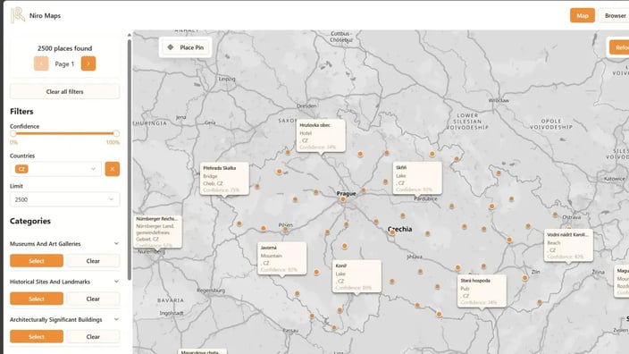 Niro Map is a small weekend project: a simple map visualizer of popular places powered by Overture Maps Places. It lets you explore, filter and inspect points of interest on an interactive map or view a single place page. The dataset includes roughly 12 million places from around the world.